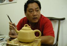 1992年高中毕业后,从事紫砂陶刻至今。