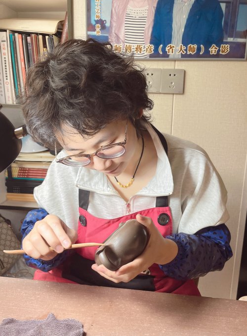 林莉,女,1996年生,助理工艺美术师,就读于南京师范大学工艺美术设计专业,后随姐姐林艳一起跟着(江苏省工艺美术大师)蒋彦学习制壶。在学习过程中,慢慢找到并发展出了属于自己的紫砂风格——创造了《太湖石语》系列壶,将灵动的太湖石造型与传统的紫砂自然地融汇在一起,大巧若拙,让众多收藏家们耳目一新。