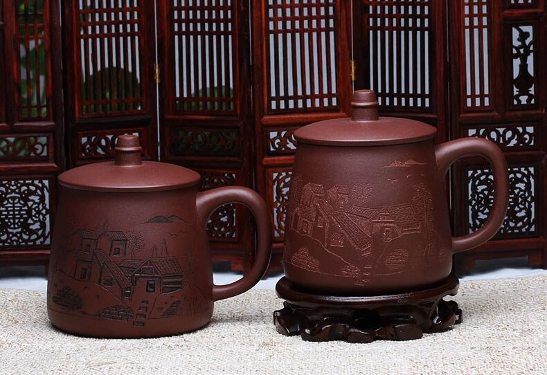 3.用开水沏茶后,可用柔软的湿布擦拭杯体,由于此时杯体表面温度较高,水印很快会干掉,此过程重复多次,有利于紫砂泥质的润泽光滑