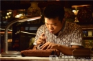 紫砂大师张勇邕城参加紫砂壶交流会 展示雕刻技艺