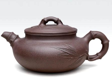 紫砂壶图片:仿古竹  泥料:黑心紫泥  容量:500CC - 美壶网
