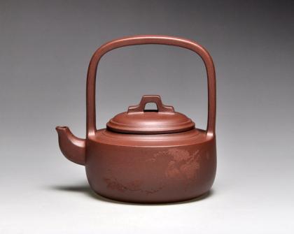 紫砂壶图片:《顺桥提梁》泥料:底槽清  容量:280cc - 美壶网