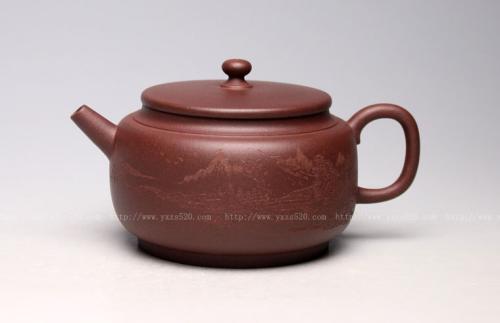 紫砂壶图片:《德福》泥料:底槽清 容量250cc 吴越刻绘 - 美壶网