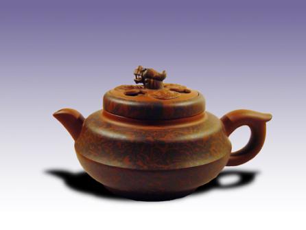 紫砂壶图片:鱼龙戏壶 400CC 绞泥 - 美壶网