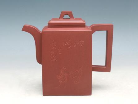 紫砂壶图片:砖方壶(与画家罗尔纯合作)(紫泥) - 美壶网