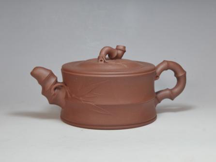 紫砂壶图片: 竹趣壶  400CC  清水泥 - 美壶网