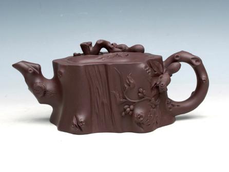 紫砂壶图片:松鼠葡萄桩壶 - 美壶网