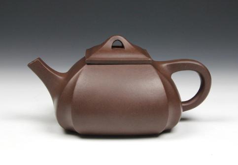 紫砂壶图片:【四方抽角】420cc 原矿黑星土 - 美壶网