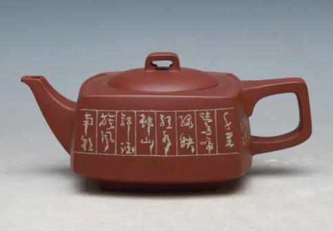 紫砂壶图片:砂四方(陈复澄篆刻) - 美壶网