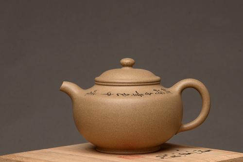 泥性:感甜嫩绵密,质坚而温润,呈近田黄色调,为江苏宜兴赵庄山系朱泥矿~黄石黄之共生矿,经挑拣练製而成,因含铁量只达6%左右,致陶之后呈“金田黄色”。