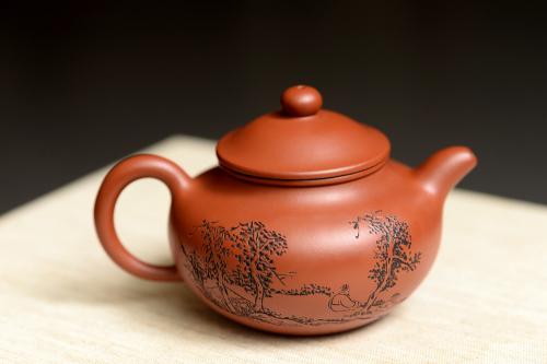 特点:週身密佈粗犷颗粒,形成十分特殊风格;红润又具 砂感,器身明显成双气孔结构,空气对流顺畅,别于一般陶器;质朴拙雅,美冠群伦,人气之佳历数百年而不衰