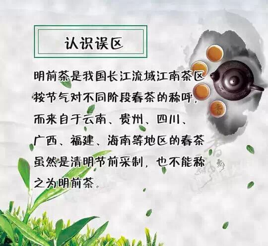 此观念源自于江南茶区的概念,明代许次纾[shū]在《茶疏》中谈到采茶时节时说:“清明太早,立夏太迟,谷雨前后,其时适中”。